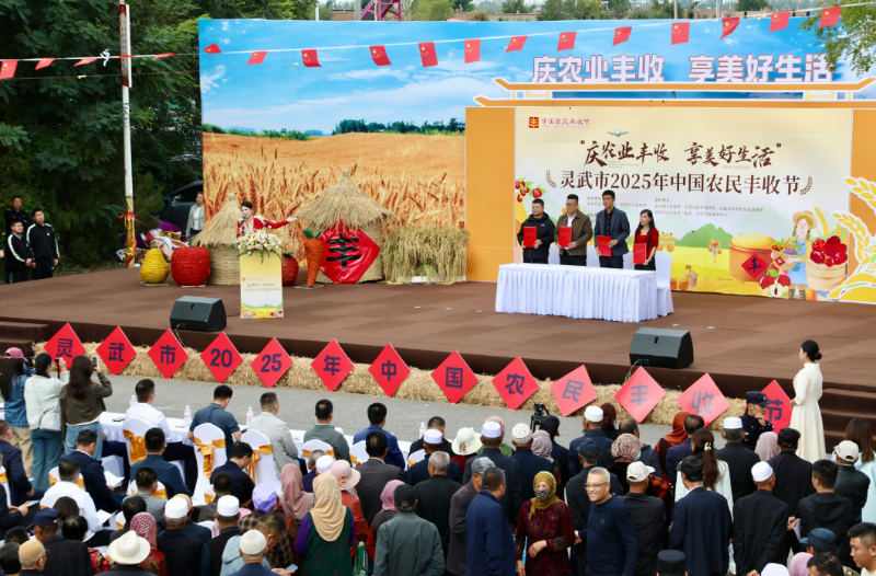 丰年人乐业,陇上踏歌声。当日,以“庆农业丰收 享美好生活”为主题的灵武市2025年中国农民丰收节热闹启幕。活动以“农誉”“农创”“农艺”“农韵”“农动”“农音”为主要内容,精心打造“丰收市集·好物荟萃”金秋消费季、“枣王争霸·共鉴丰饶”评选、“金穗满仓·非遗传情”非遗互动展、“灵武丰物·镜中生金”美陈打卡、“活力乡村·农运盛举”趣味运动会及“大地欢歌·乐享丰收”音乐夜等多项内容,以节为媒、以庆聚力,全面展示灵武农业农村发展的新成就、乡村产业振兴的新面貌和广大农民昂扬奋进的新风采。