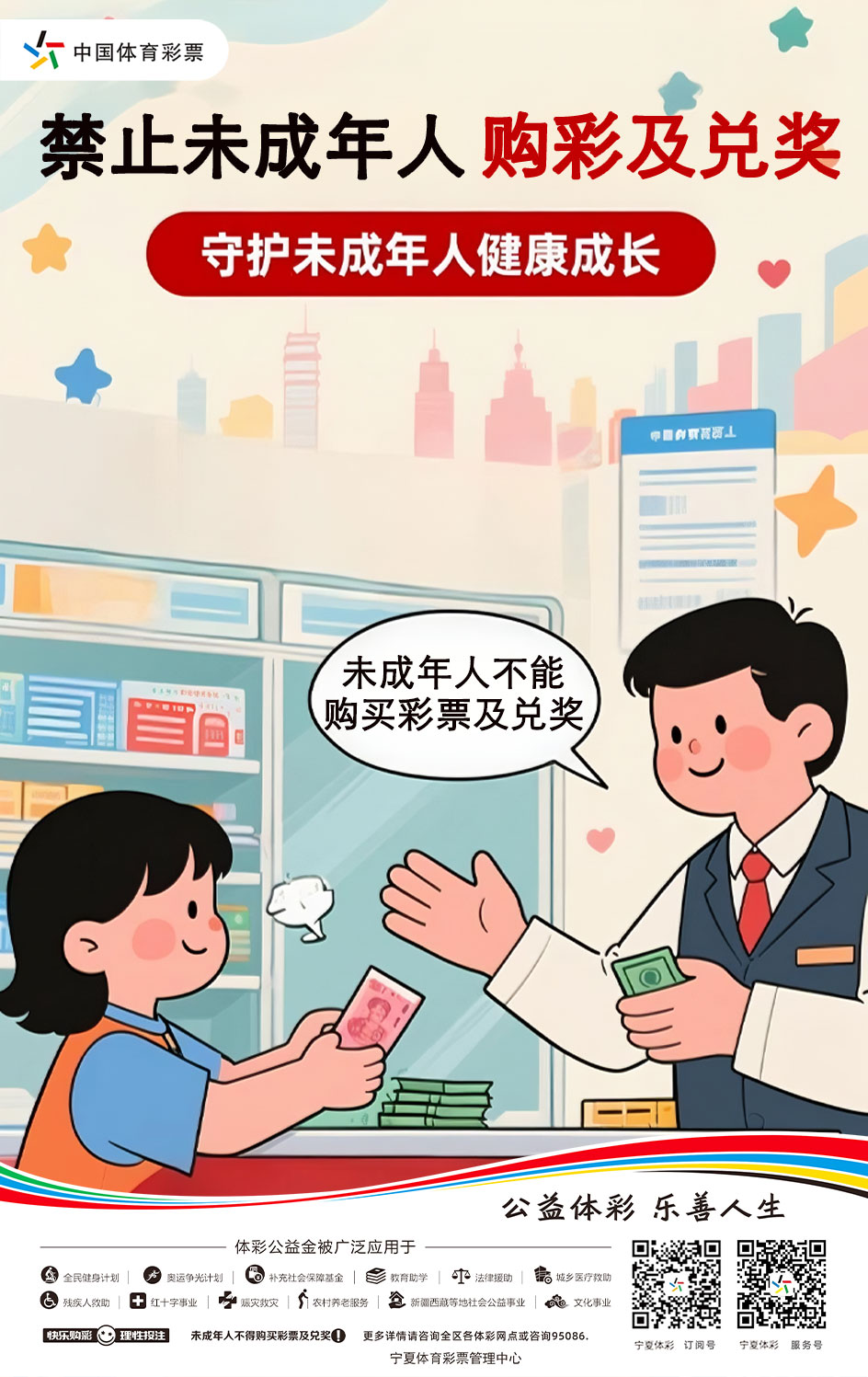 中国体育彩票是为国家体育事业和社会公益事业筹集资金的一种方式,其健康发展的前提是合规与责任,将《彩票管理条例》第十八条落到实处,保护未成年人,就是保护我们的未来。让每一张中国体育彩票都在阳光与责任中运行,为体育事业和公益事业添砖加瓦。(完)