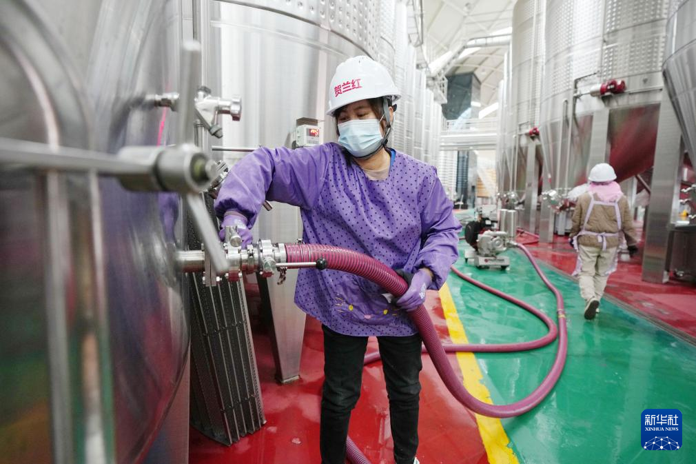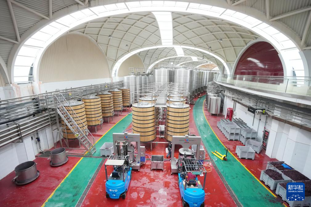 工作人员在银川市永宁县闽宁镇贺兰红酒庄酿酒车间工作(10月14日摄)。新华社记者 王鹏 摄