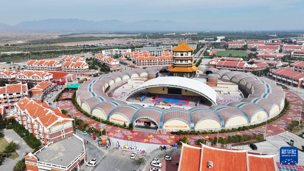 位于银川市永宁县闽宁镇的贺兰红酒庄(无人机照片,10月14日摄)。新华社记者 杨植森 摄