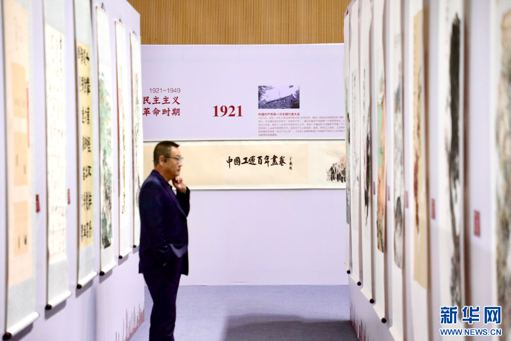 展览现场展出的223幅精美的书画作品以笔墨抒发情感,以丹青描绘梦想,无论是笔锋刚劲的书法作品,还是意境深远的绘画创作,都展现出职工们深厚的艺术功底和独特的创作视角,让观众们大饱眼福。值得关注的是,《中国工运百年画卷》再度震撼亮相。画卷以宏大的叙事方式和精湛的绘画技艺,展现了中国工运百年来的发展历程,具有极高的现实意义和艺术价值。